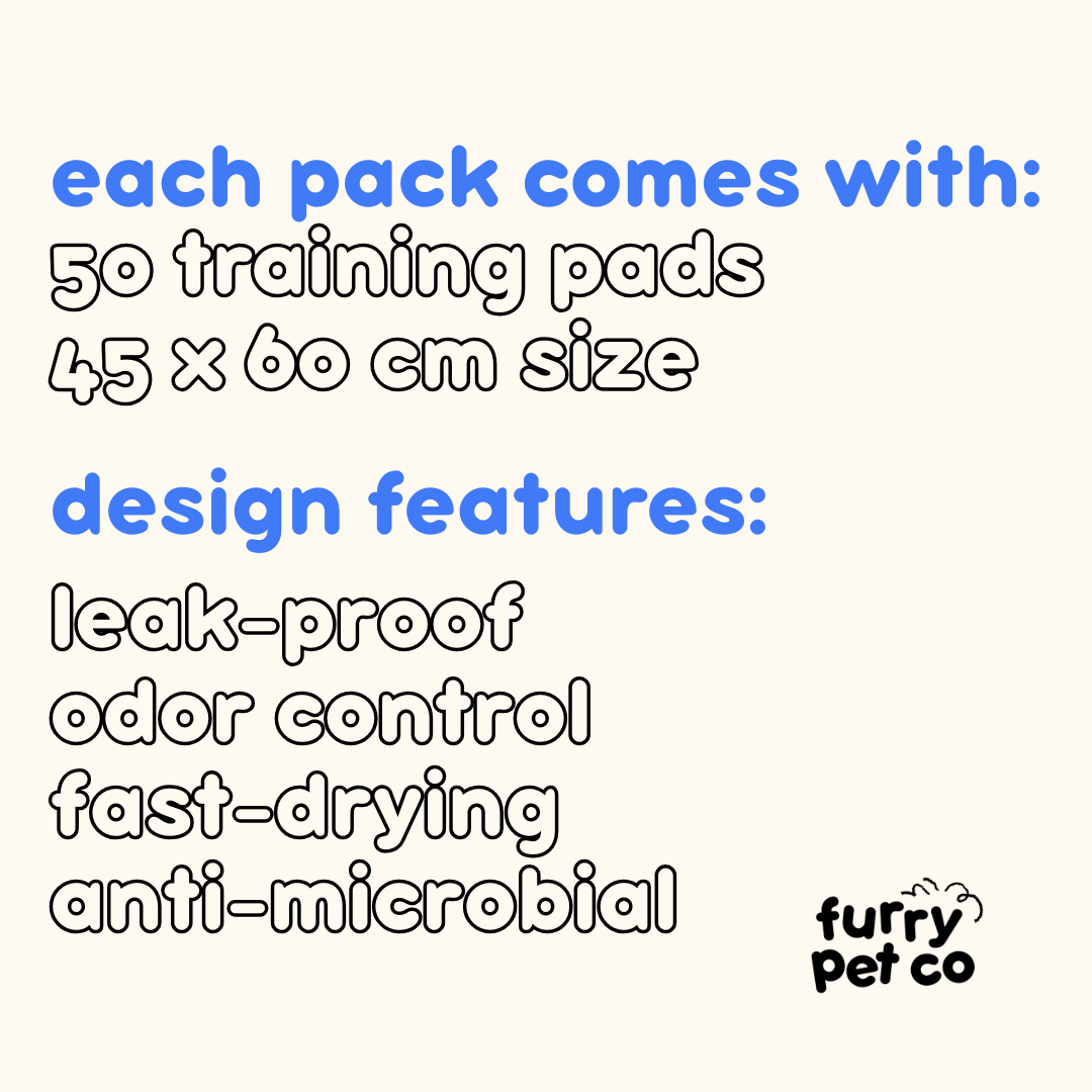 Each pack comes with 50 (45x60cm size) high quality training pads.